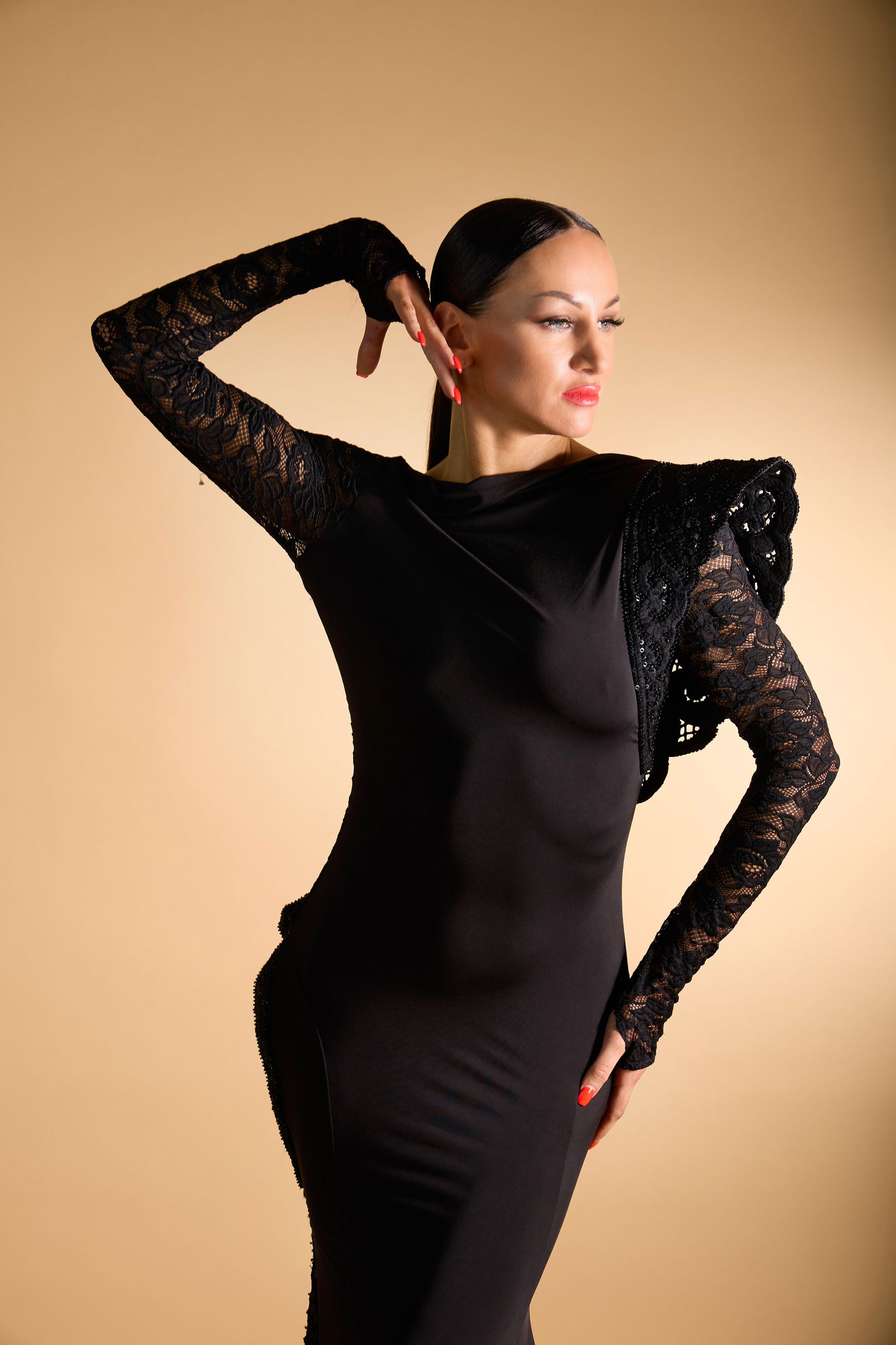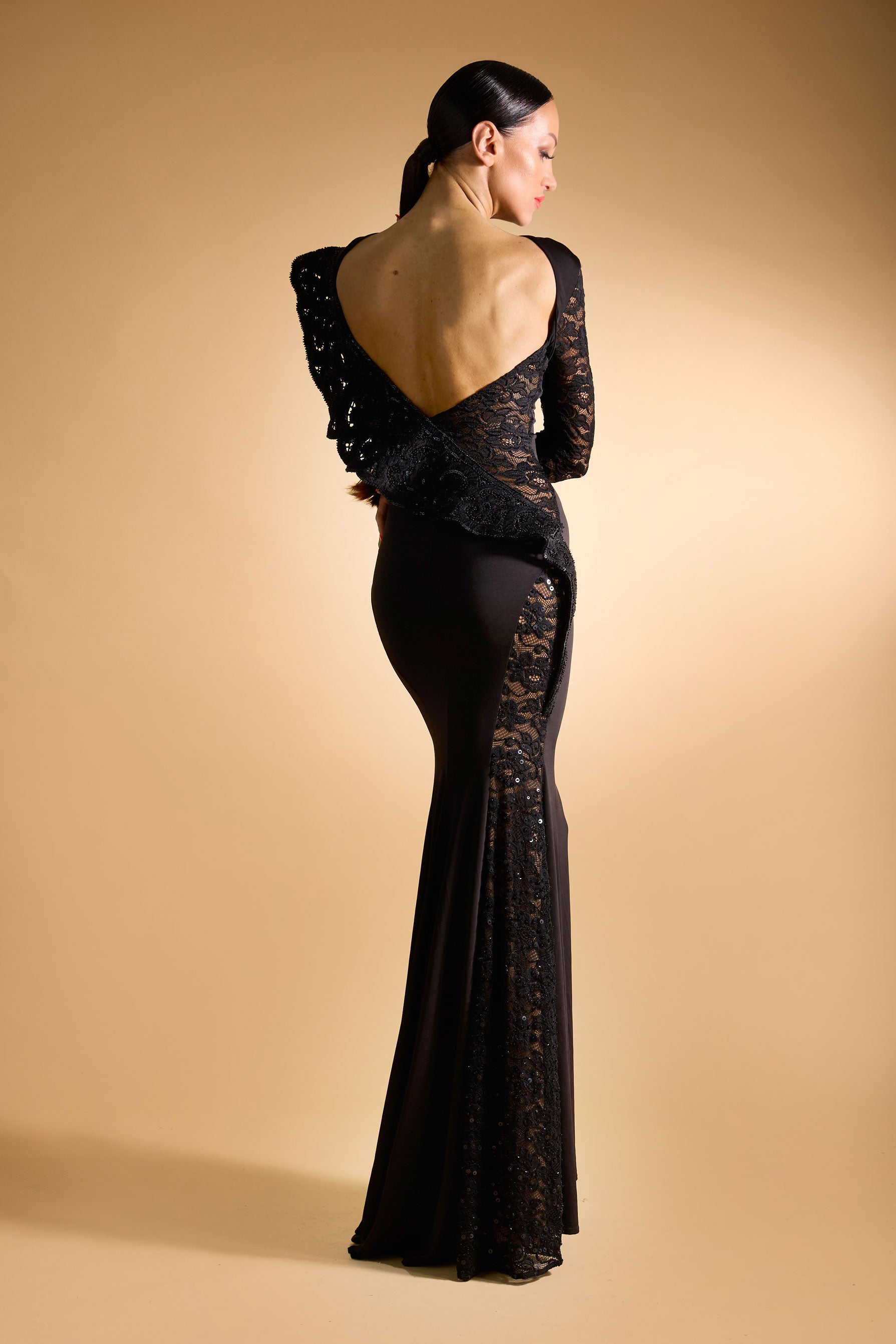 Beaded Lace Open Back Evening Dress