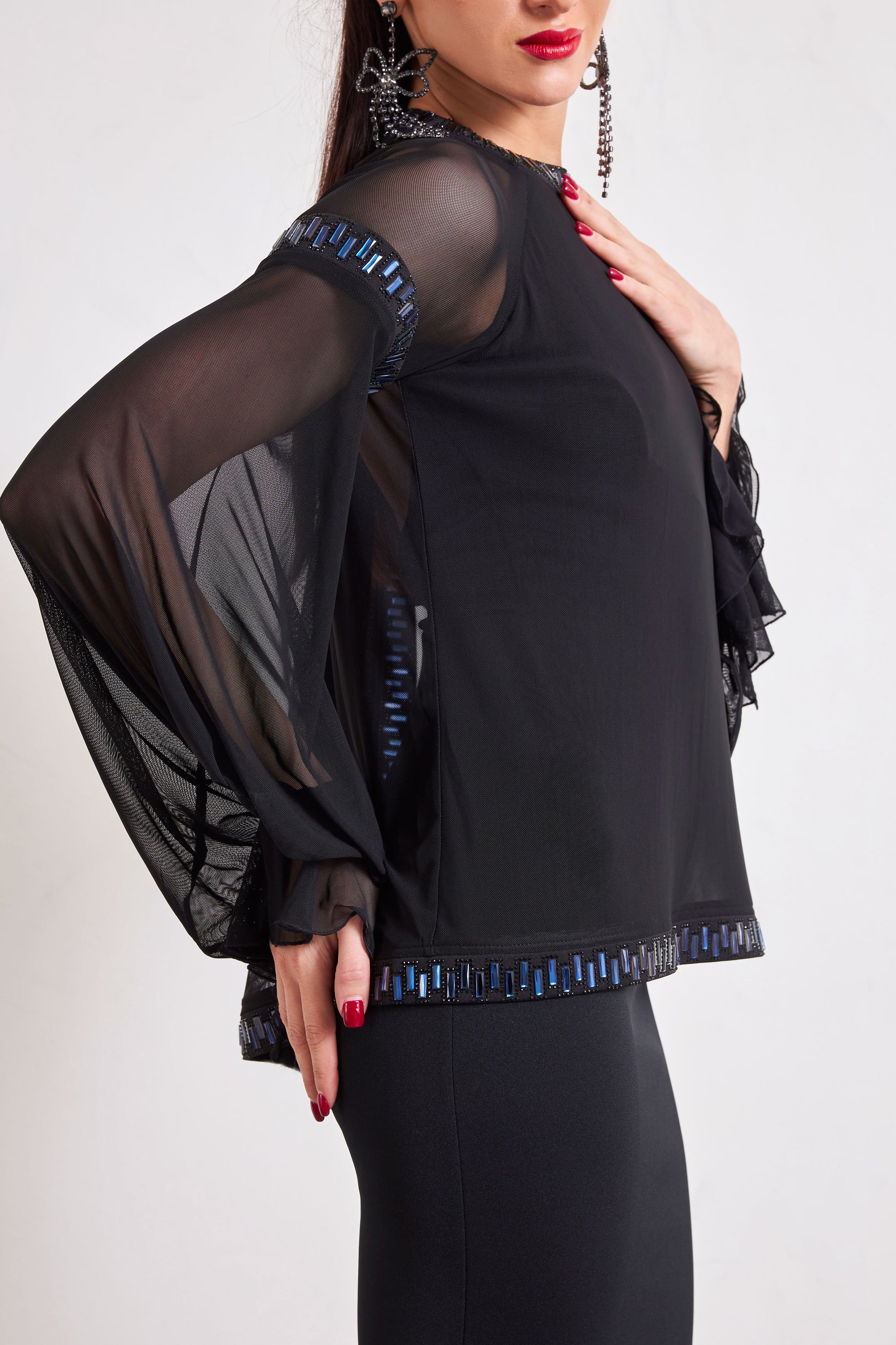 Mesh Sleeves Crystal Edge Cocktail Dress
