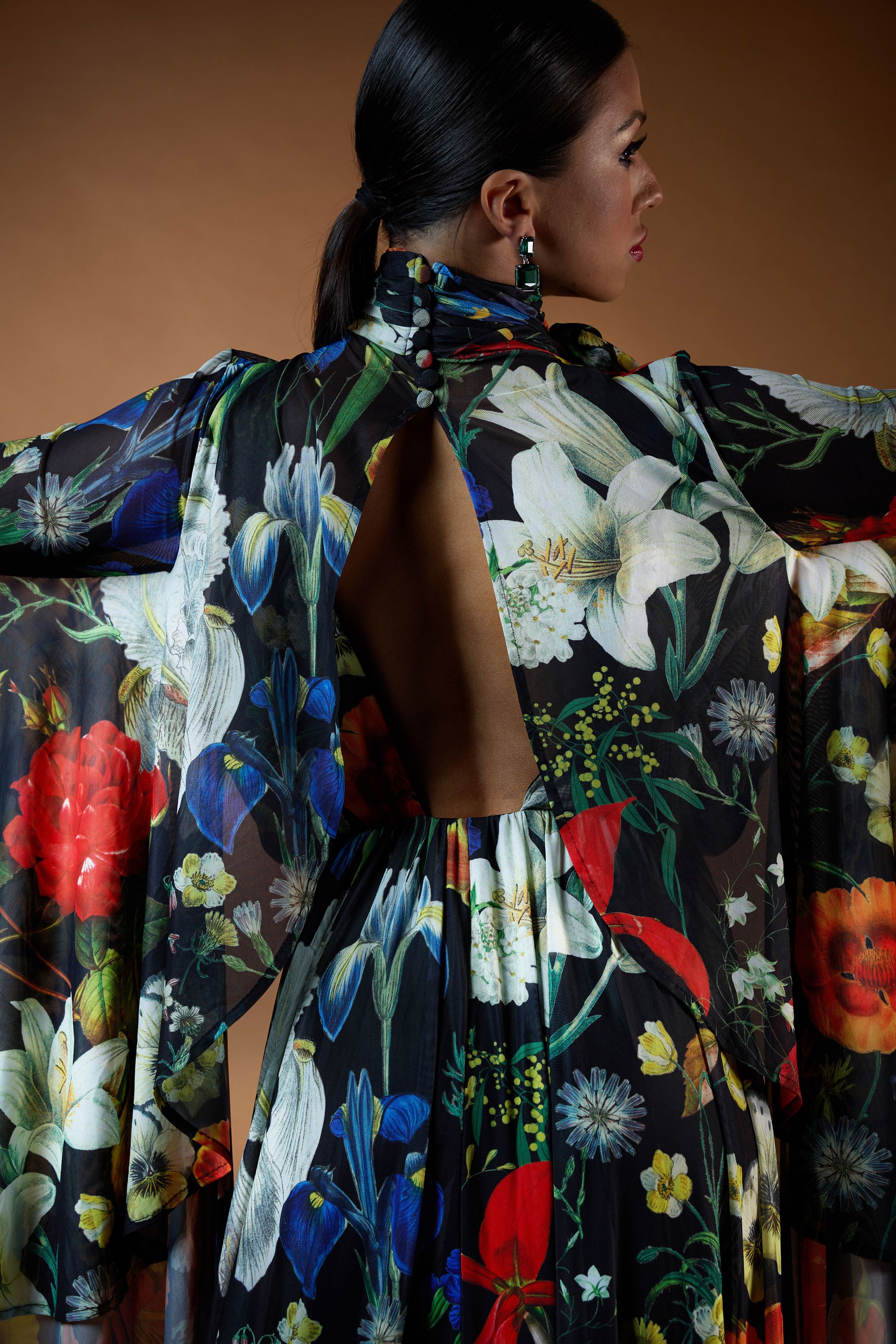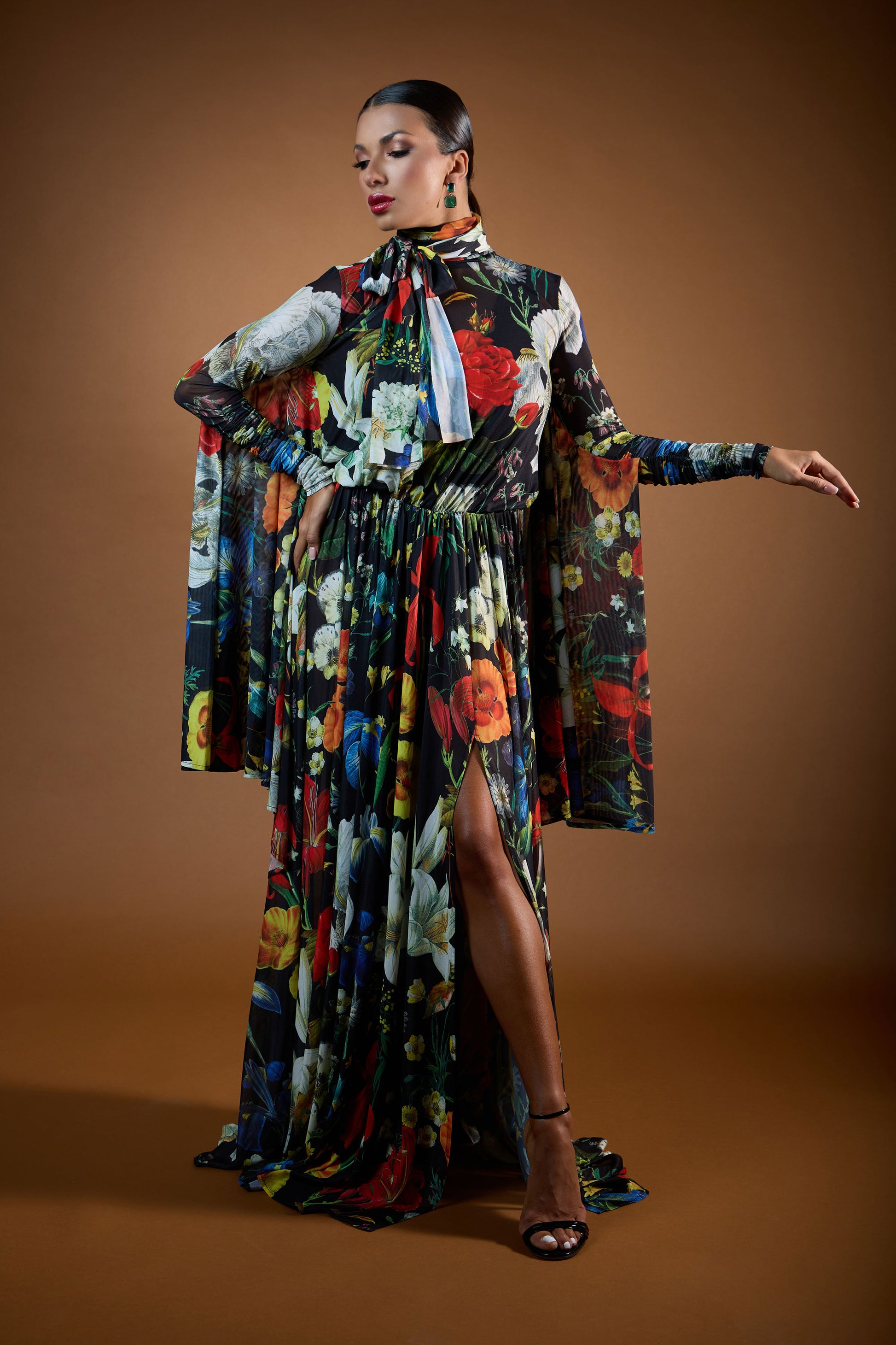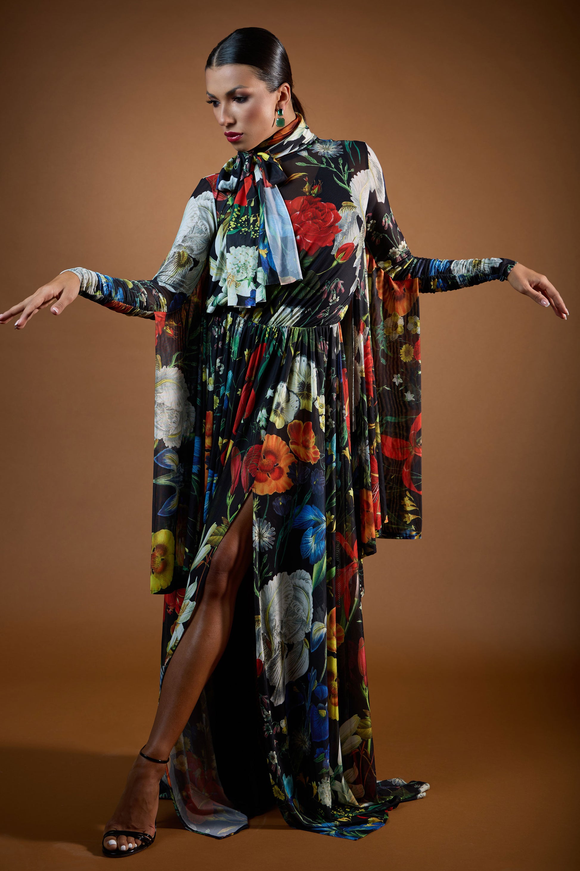 Turtle Neck Long Sleeves Draped Evening Dress